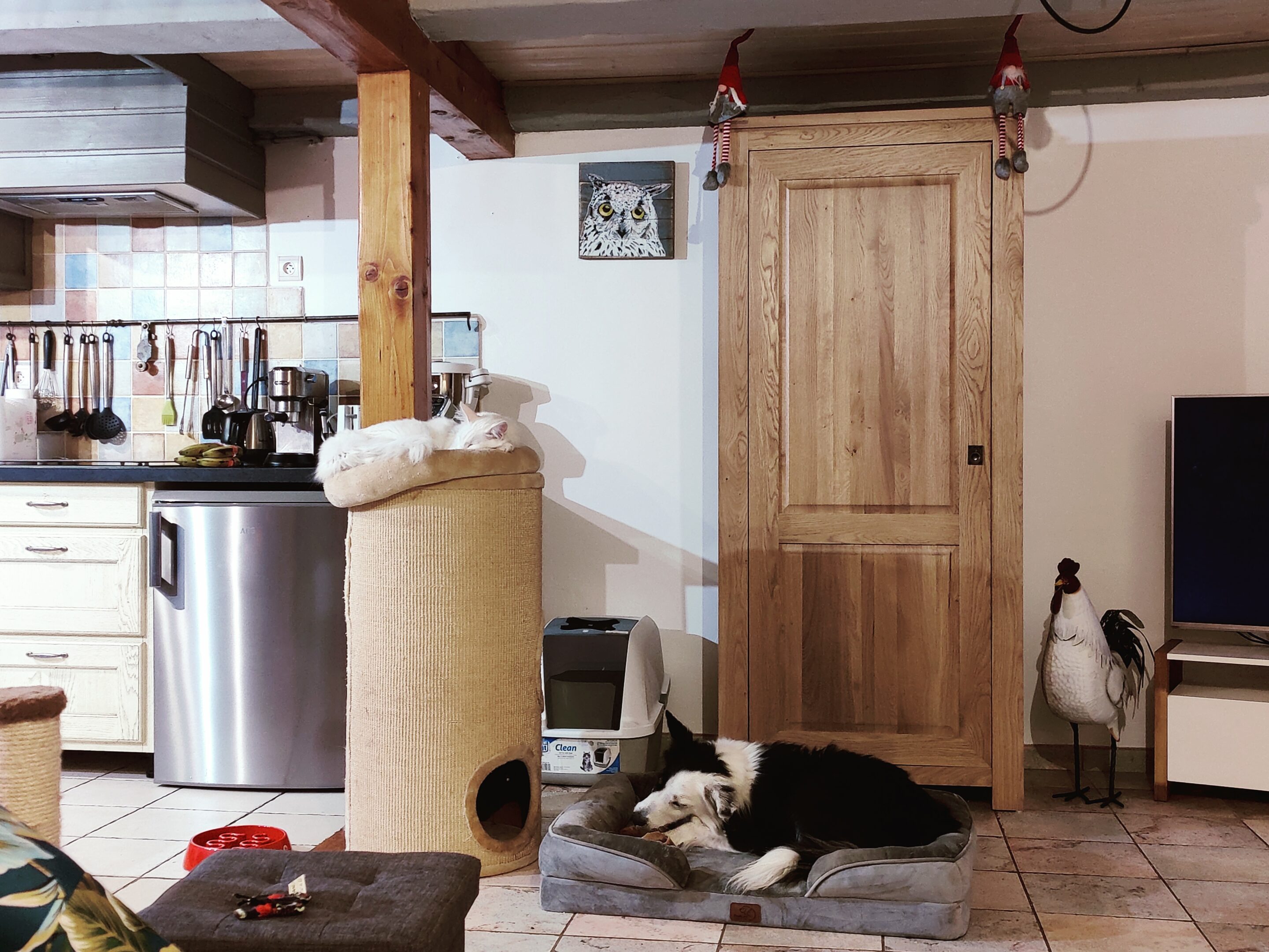Ici, aucun supplément ni aucune restriction : vous venez avec autant de chiens que vous le souhaitez, quelle que soit leur taille ou leur race. Ils partagent toutes les pièces de la maison, y compris les chambres, afin de profiter du séjour avec vous.