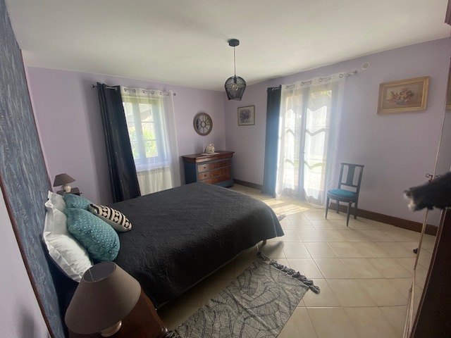 - Chambre avec lit 160 × 200, literie récente et porte-fenêtre donnant sur le jardin