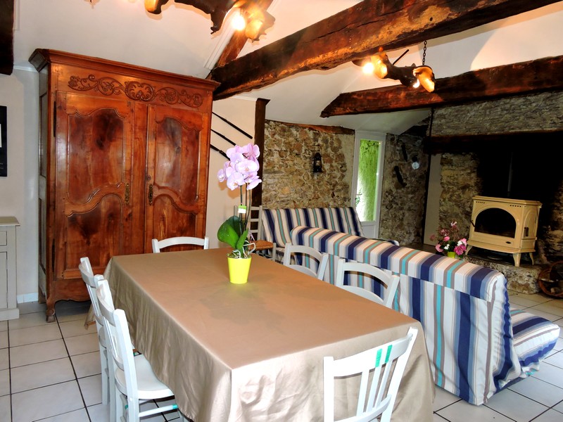 Ambiance authentique garantie avec pierres et poutres apparentes, et un poêle à bois pour des soirées chaleureuses.