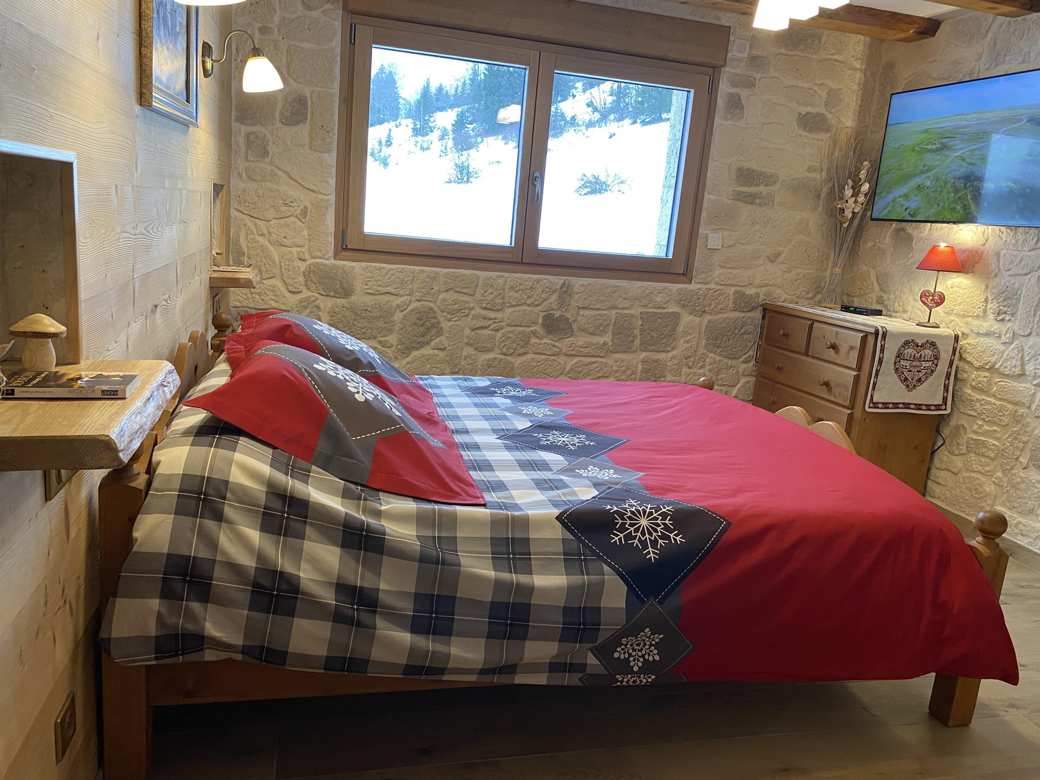 - Chambre double (lit 160×200) avec cheminée originale et TV connectée.