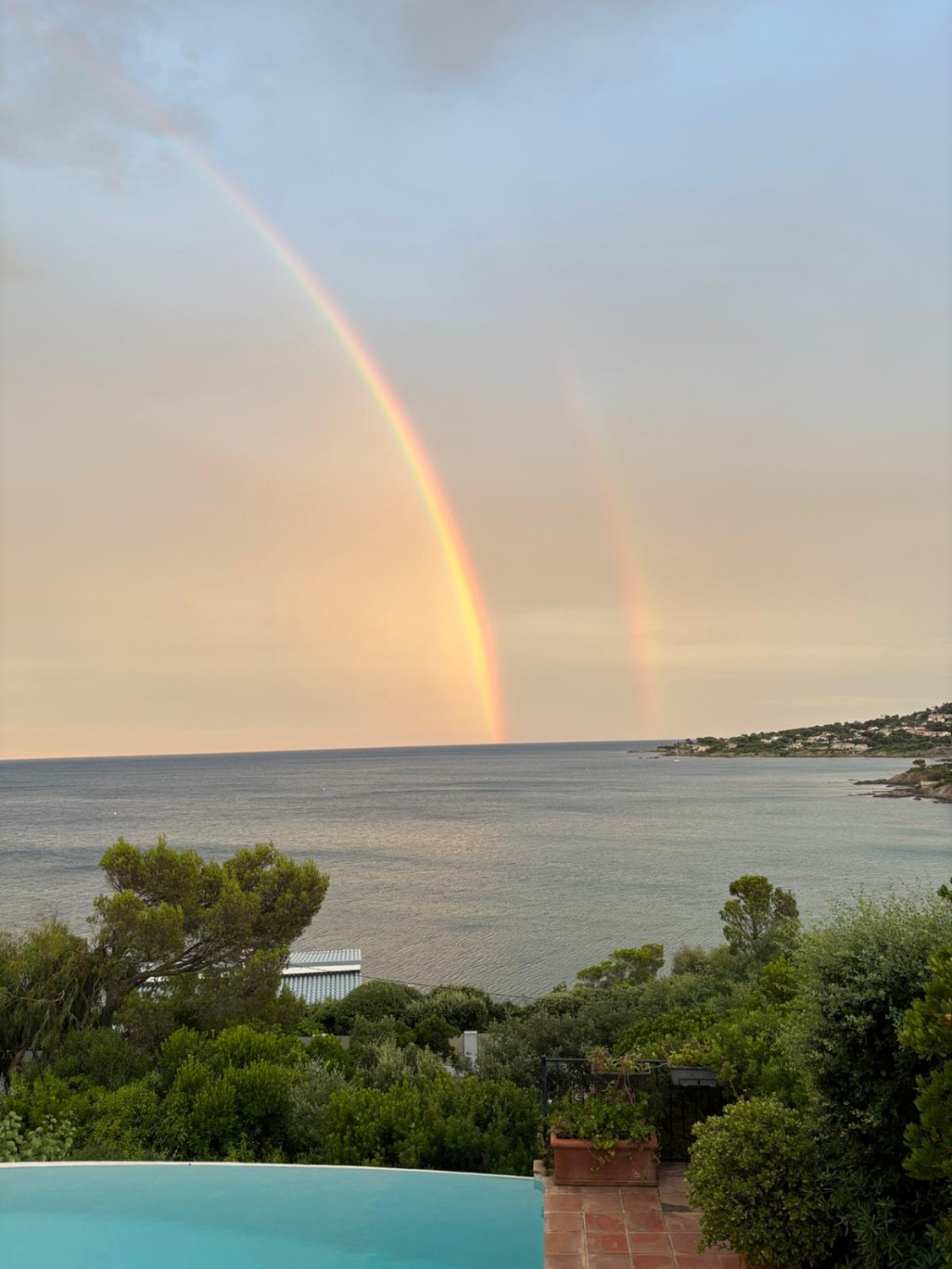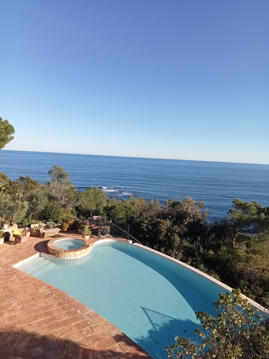 L’appartement se situe dans une charmante villa provençale entourée d’une propriété de 2000 m². Depuis la terrasse, la vue sur la piscine et la Méditerranée est splendide.